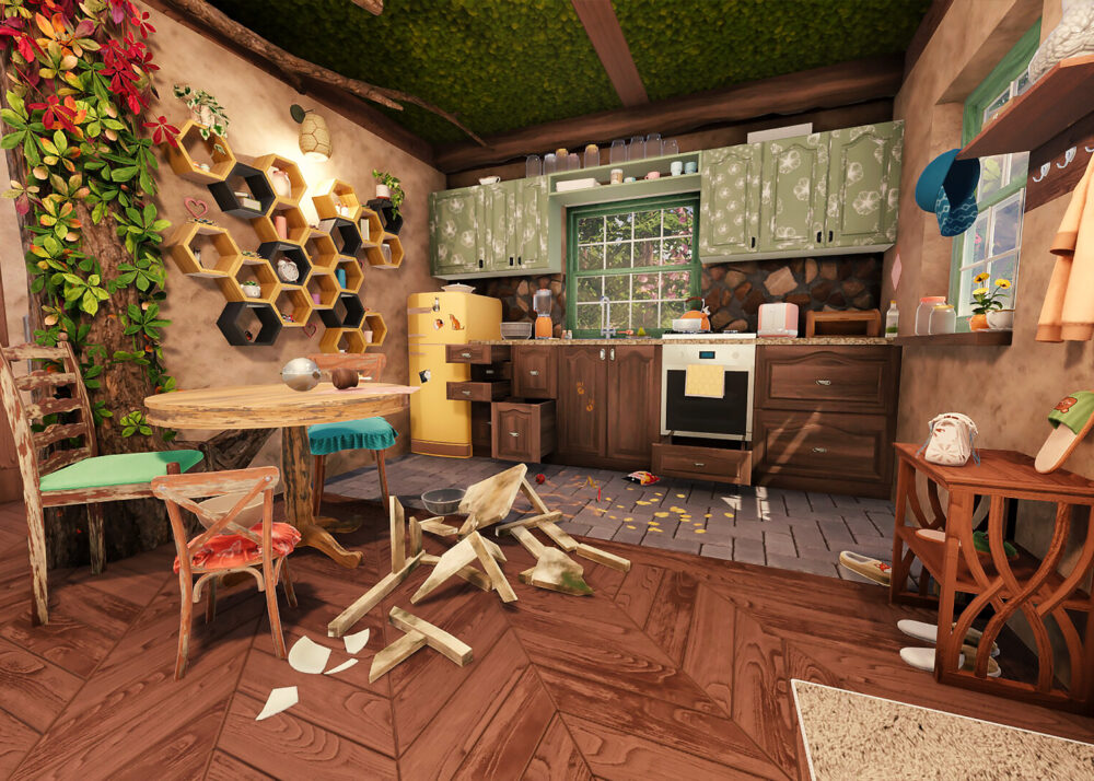 - Phân chia công việc: Một người dọn rác, một người sơn tường, một người lo nội thất – cùng nhau biến những căn nhà cũ nát thành dinh thự lộng lẫy.